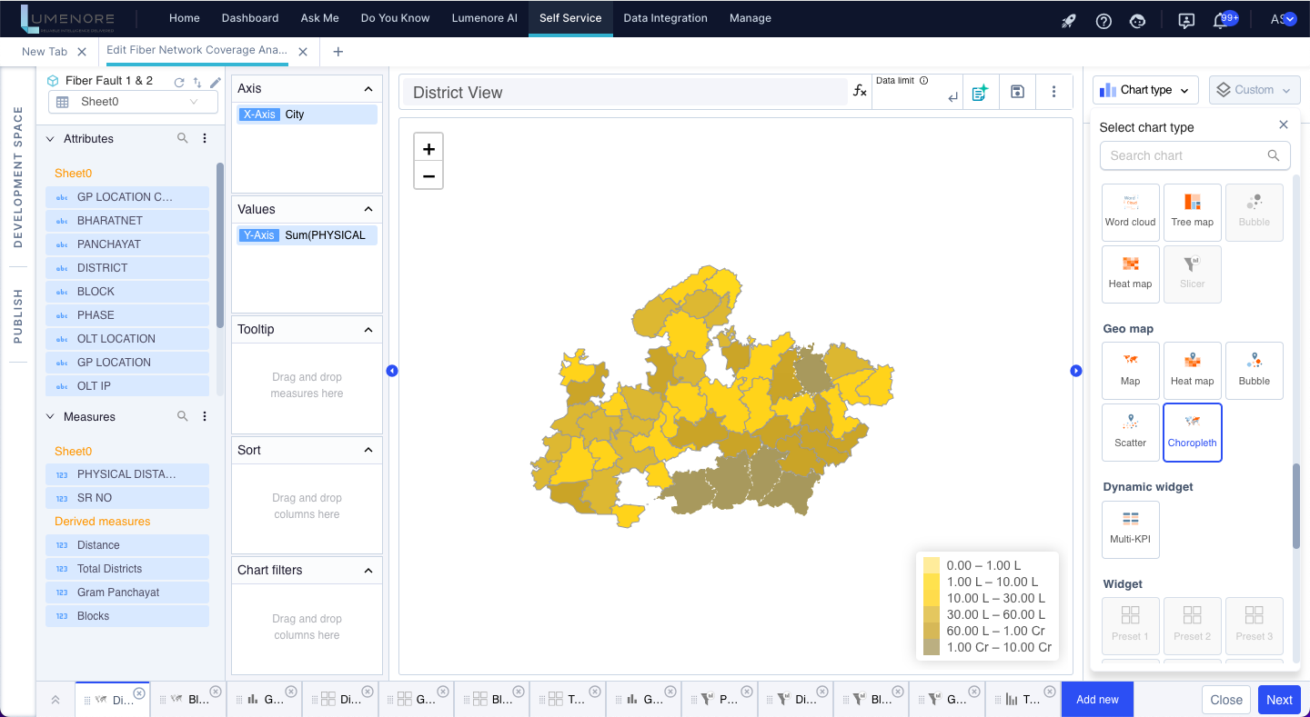 1. Adding a Geo map in dashboard is as simple as creating a simple chart. What you need is location data in your dataset and set attribute type as Location for that location data column in data dictionary. Now, in dashboard creation panel select that location attribute and select chart type as geo map. Give this map a name and click on next to add this map to your dashboard.