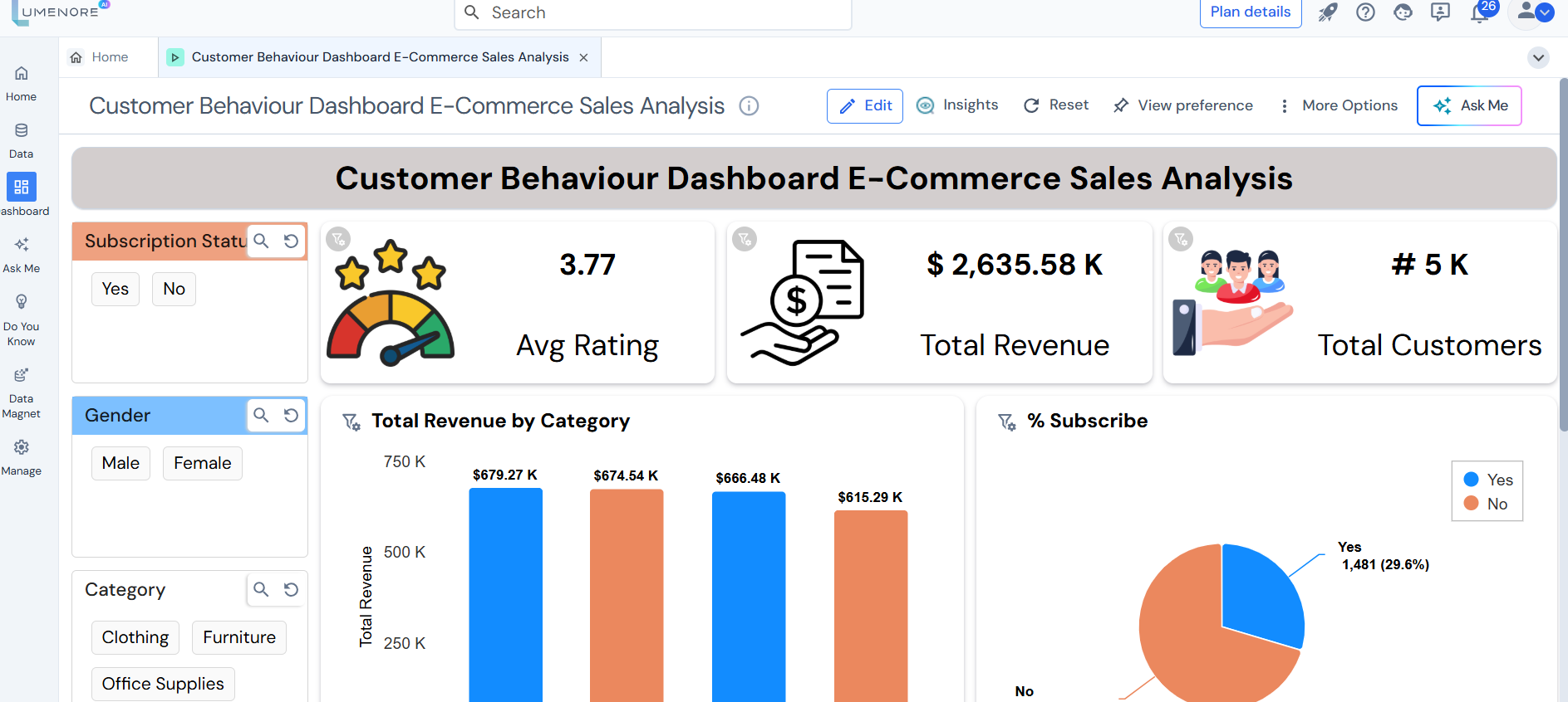 Once the dashboard is open (as shown in the screen with KPIs, charts, and slicers), navigate to the top-right corner and click on the Edit option.
