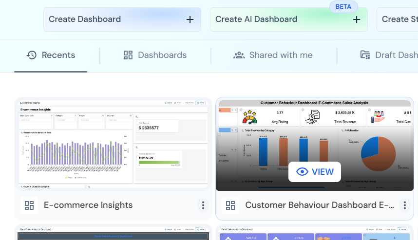 First, go to the Dashboards section and open the dashboard you want to modify by clicking on View.